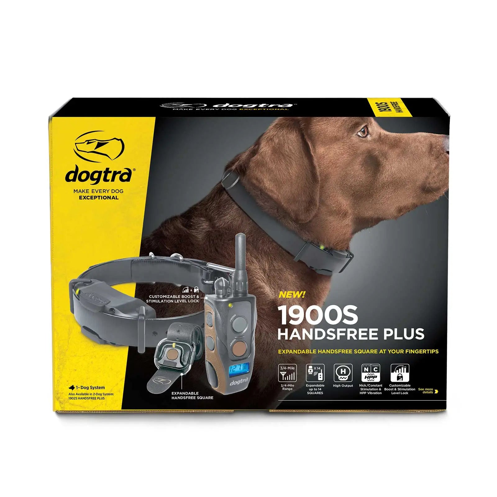 Este completo sistema de collar electrónico de adiestramiento a distancia, resistente al agua, es ideal para perros grandes de 16 kg o más. Pensando en la comodidad y la seguridad, el modelo 1900S HANDSFREE PLUS, con un alcance de 1,2 km, cuenta con certificación IPX9K de resistencia al agua, lo que lo hace duradero y fiable para condiciones de adiestramiento exigentes. Además del fácil acceso manos libres, el 1900S HANDSFREE PLUS ofrece 127 niveles de estimulación para un control preciso, vibración HPP (High Performance Pager) y un receptor ergonómico adaptado al cuello del perro.