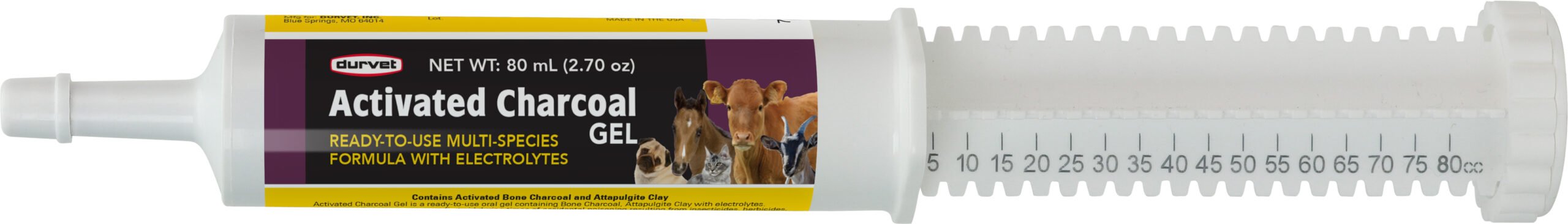 Para uso en bovinos, equinos, terneros, potros, ovinos, caprinos, perros y gatos. Seleccione la dosis recomendada en los tubos y alimente a los animales por vía oral, dándoles tiempo para tragar. Perros y gatos: 1-3 ml por kg (2,2 lb) de peso corporal. Ovejas y cabras: 1-3 ml por kg (2,2 lb) de peso corporal. Bovinos y equinos adultos: Se recomienda administrar hasta 300 ml. Terneros y potros: Se recomienda administrar hasta 80 ml. Repita la aplicación del gel de carbón activado después de 1 a 3 horas o según sea necesario. En animales que no pueden tragar, se debe utilizar una sonda gástrica. Si la condición no mejora, consulte a su veterinario. Según el estado del animal, se debe administrar terapia de apoyo, como fluidoterapia parenteral y antídotos inyectables, junto con gel de carbón activado para una recuperación eficaz. Puede no ser muy efectivo en el tratamiento de intoxicaciones por metales pesados como plomo, arsénico, mercurio, etc.