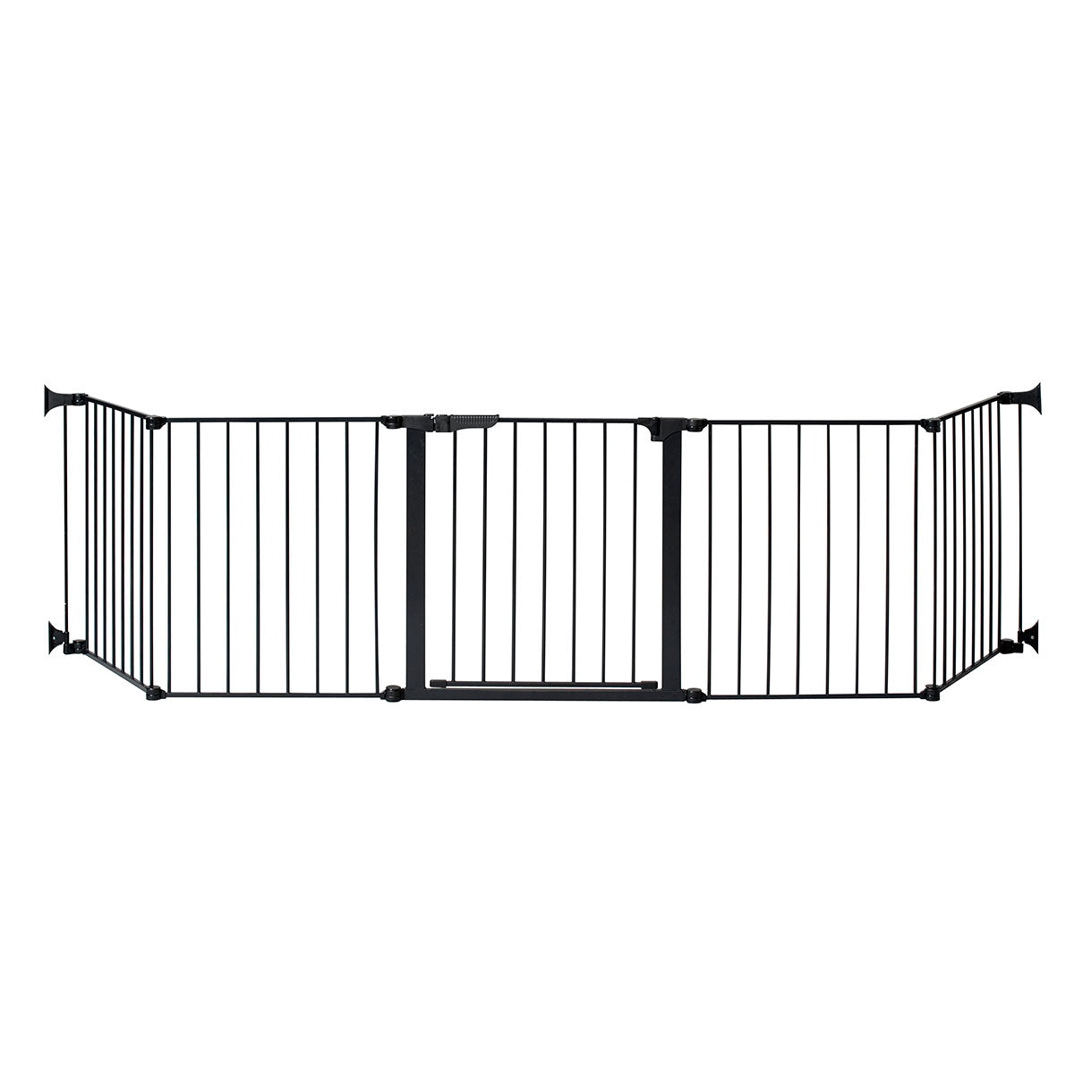 Este exclusivo sistema de puerta se adapta a hogares estándar de 1,83 m (6 pies) y a la mayoría de las parrillas, brindando protección contra las superficies calientes y las llamas de las chimeneas en uso, facilitando el acceso a las llaves de encendido de gas, bordes afilados, esquinas y leña sucia. La sección de puerta extra ancha se puede colocar en cualquier punto del diseño, brindando acceso donde se necesite. El cierre magnético mantiene la puerta cerrada y bloqueada automáticamente. Cada sección cuenta con bisagras y una junta giratoria para una instalación personalizada. El sistema de liberación rápida permite desmontarla fácilmente cuando sea necesario. Hay extensiones opcionales disponibles de 23 cm (9 pulgadas) y 61 cm (24 pulgadas) para un ajuste perfecto. El sistema se puede conectar para usarlo alrededor de estufas de leña o para crear un área de juegos independiente. (Recomendamos al menos 2 secciones adicionales para un área de juegos independiente).