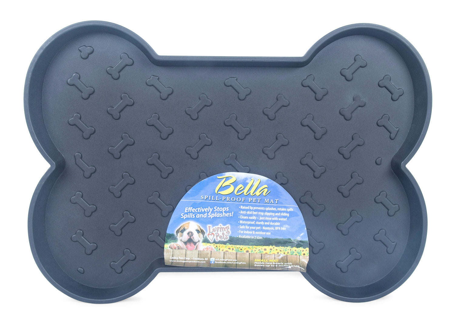Las alfombrillas para perros Bella, con forma de hueso y diseño antiderrame, evitan salpicaduras y retienen los derrames con estilo. Cuentan con bordes elevados para una máxima capacidad de contención, una superficie antideslizante con relieve de hueso y patas antideslizantes que previenen resbalones, deslizamientos, ruidos y daños en el suelo. No tóxicas, libres de BPA y con calidad comprobada. Aptas para uso interior y exterior. Fáciles de limpiar: basta con enjuagarlas con agua. - ALTURA (PULGADAS): 0,750 - ANCHO (PULGADAS): 13,250 - LARGO (PULGADAS): 18,250