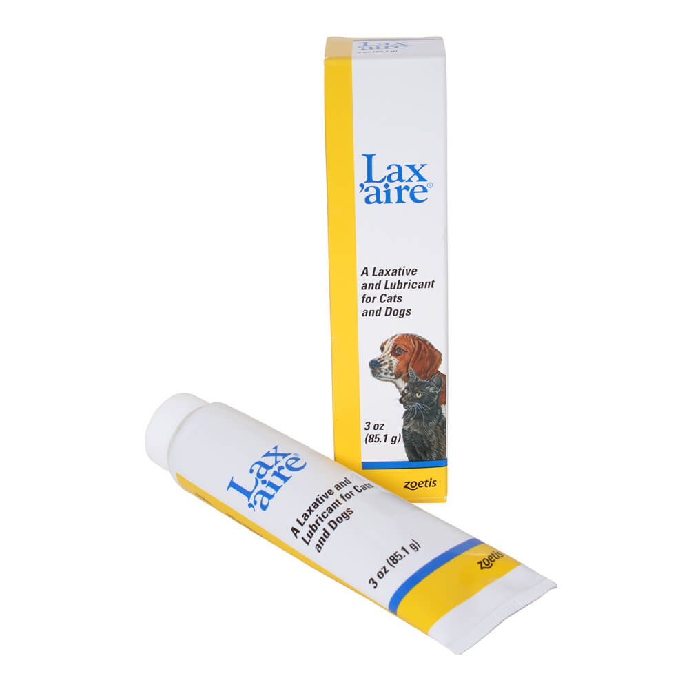 Lax'aire es un laxante emoliente suave y lubricante intestinal con vitaminas esenciales, ácidos grasos y hierro para la salud de su mascota. Ayuda con diversos problemas digestivos, incluyendo bolas de pelo y estreñimiento. Ayuda a prevenir que el pelo obstruya el sistema digestivo, lo que reduce los vómitos y las bolas de pelo. Sabor agradable. Fácil de administrar. No se han reportado efectos secundarios. La vaselina líquida es un lubricante y el aceite de hígado de bacalao es un laxante. Al ser digeridos, estos ingredientes ayudan a aliviar las molestias e irritación causadas por las bolas de pelo y el estreñimiento. - PRECAUCIONES/ADVERTENCIAS: Precaución: Mantener fuera del alcance de los niños. - INSTRUCCIONES: Instrucciones: Lax'aire es un laxante oral suave y lubricante intestinal para uso en gatos y perros. Lax'aire es solo para uso animal. Consejo: El producto se puede lamer del dedo, aplicar en la nariz o pata de la mascota, o mezclar con su comida. Gatos/Gatitos: Todos los pesos - Aplicar una tira de ungüento de 1,25 a 3,8 cm diariamente durante 2-3 días, luego de 1,25 a 2,5 cm 2-3 veces por semana. Perros/Cachorros: Todos los pesos - Aplicar una tira de ungüento de 1,25 a 5 cm 2-3 veces por semana. Almacenamiento: Conservar a temperatura ambiente. - INGREDIENTES: Vaselina líquida, aceite de hígado de bacalao, aceite de soja y hierro peptonizado en una base palatable. - MATERIAL/COMPOSICIÓN: Pasta - REQUISITOS DE ALMACENAMIENTO/ELIMINACIÓN: Conservar entre 15 y 30 °C. - ALTURA (PULGADAS): 15,9 cm - ANCHO (PULGADAS): 3,8 cm - LARGO (PULGADAS): 3,8 cm