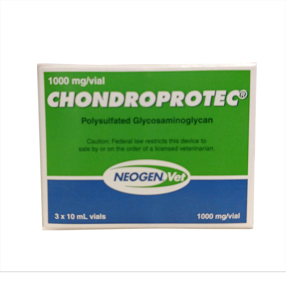 Chondroprotec Chondroprotec is a sterile solution used to aid in the treatment of wounds, lesions, burns and other trauma in horses, dogs and cats. Chondroprotec contains polysulfated glycosaminoglycan. Each 10 ml of Chondroprotec contains 1000 mg polysulfated glycosaminoglycan. Chondroprotec is indicated for use in the treatment of secreting and bleeding dermal lesions, first and second degree burns, trauma injuries, pressure ulcers, Venous Statis ulcers, donor sites and partial and full thickness wounds. Reapply Chondroprotec daily and redress wound site every 5-7 days or as needed. - DIRECTIONS:Directions for Use: 1. Irrigate wound site with sterile water or normal saline. 2. Apply CHONDROPROTEC liberally to wound surface. 3. Cover with gauze or a non-stick (Telfa) pad. 4. Redress wound site every 24-48 hours. Store at controlled room temperature (15°-30°C). Protect from freezing. Discard unused portion. For use on dogs, cats and horses. Not for food animal use. - HEIGHT(INCHES): 1.000 - WIDTH(INCHES):1.000 - LENGTH(INCHES):1.000