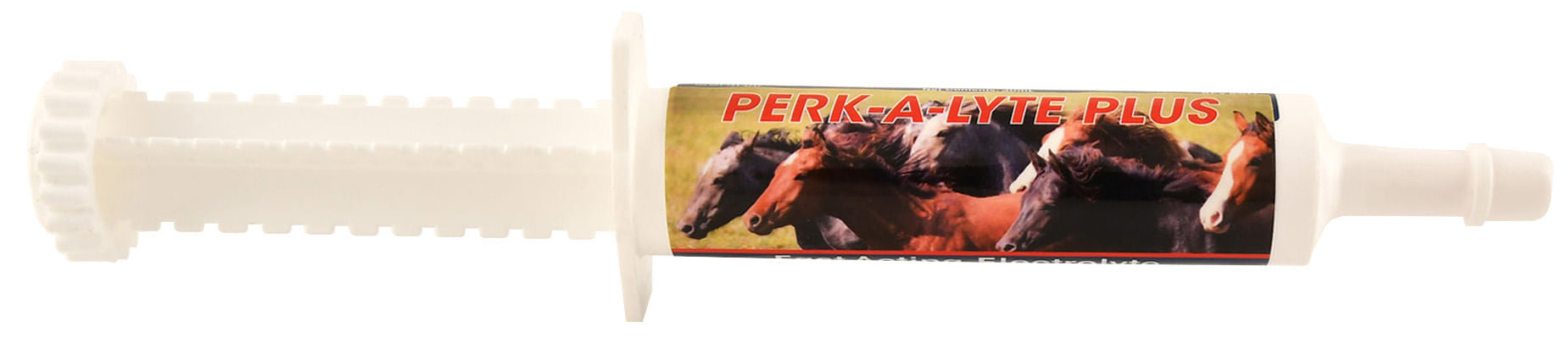 Perk-A-Lyte Plus Perk-A-Lyte Plus is a fast acting electrolyte that helps fight dehydration, fatigue, and weakness. It returns the body fluid and electrolytes to normal levels for optimal performance. Directions: Administer the contents of the 30 mL tube (one dose) on the back of the horse's tongue. - HEIGHT(INCHES): 9.000 - WIDTH(INCHES):2.000 - LENGTH(INCHES):9.000