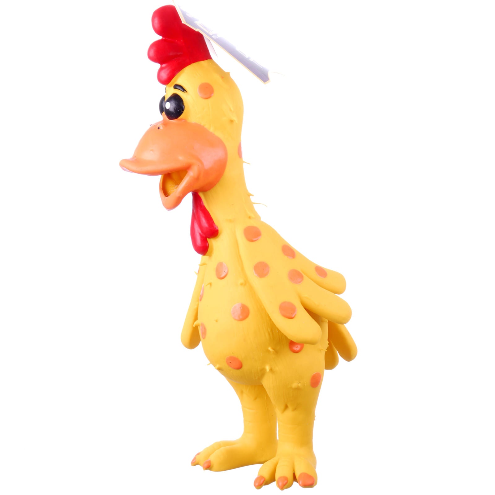 Globkens Dog Toy Latex chickens that look freshly plucked with loud squeakers. Assorted. Colors may vary. Important: Never leave pet unattended with any treat or toy! - HEIGHT(INCHES): 2.500 - WIDTH(INCHES):3.500 - LENGTH(INCHES):7.500