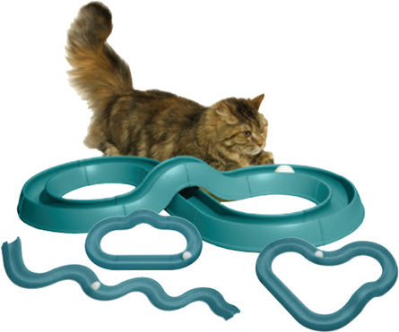 Turbo Track TM Its a track...with a ball in it. What makes it different? You can arrange it into any configuration you want! Or better yet you can keep your cat from getting bored with the same old thing by changing it up every now and then. Each piece twist-locks together with any other piece...