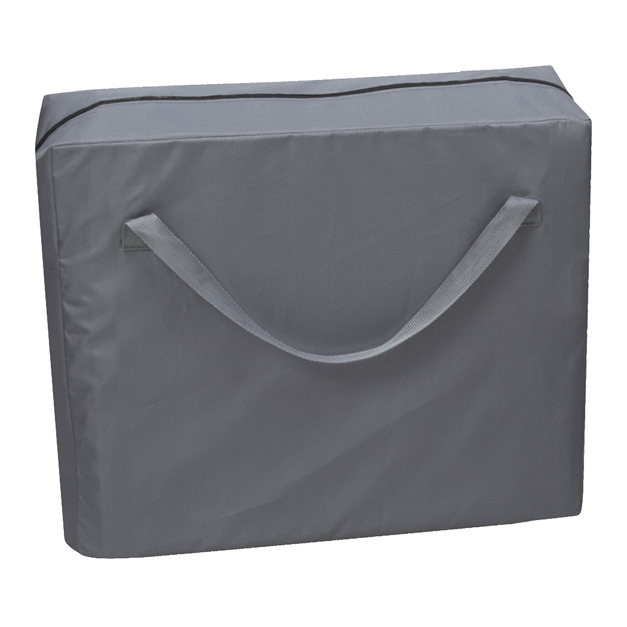 The aluminum frame goes anywhere and sets up easily. Water repellent mattress and machine washable sheet included....