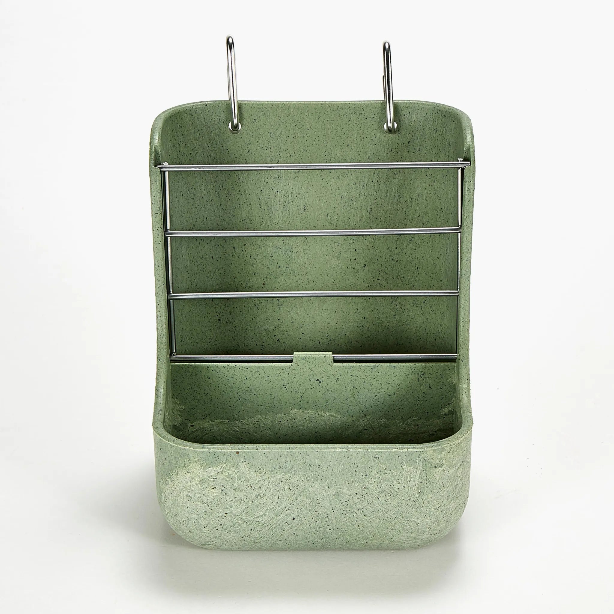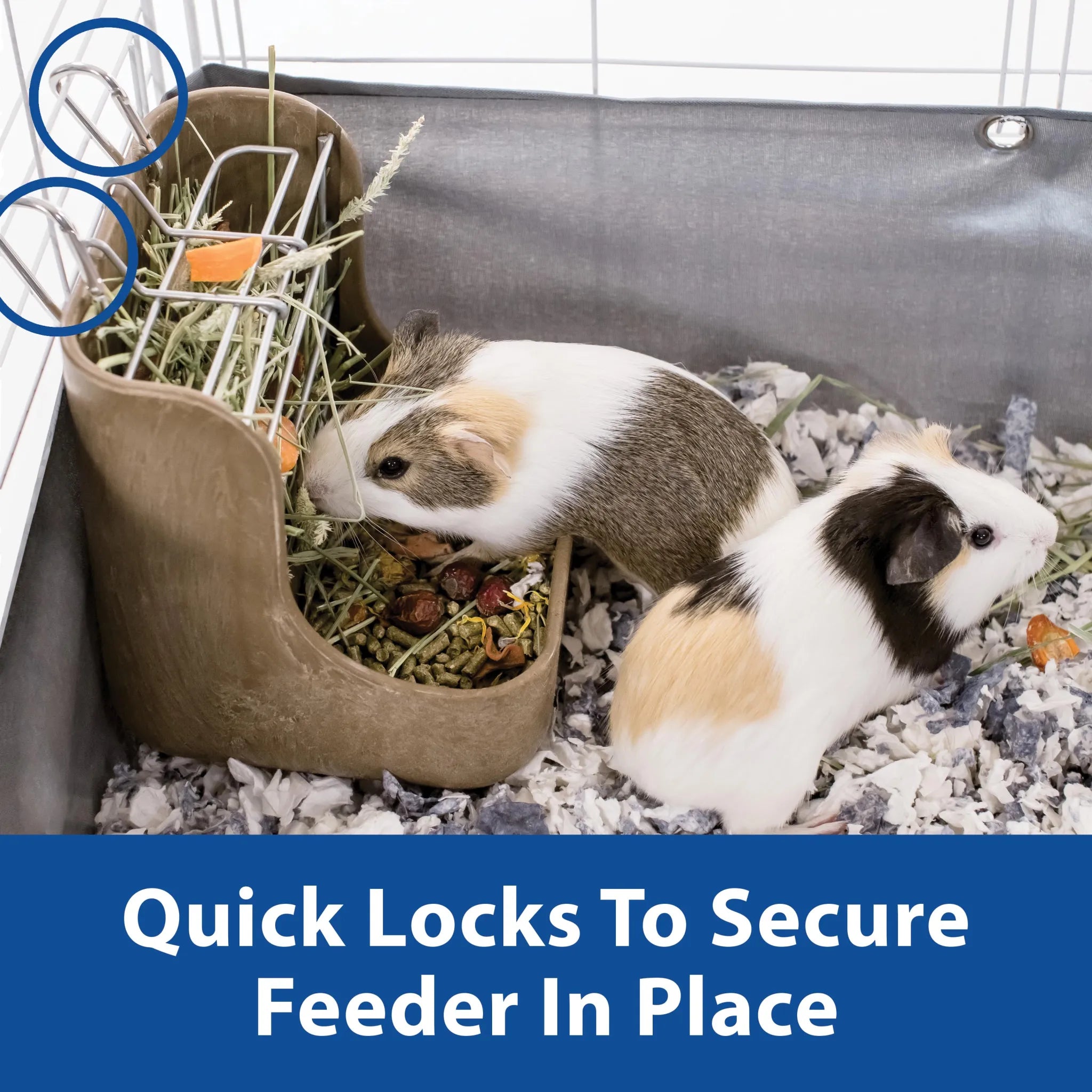 This combo feeder has a compartment for hay and a separate compartment for food. The Feeder can be hung securely anywhere in your pet's cage using the included carabiner clips. This keeps your pet's food and hay fresh and clean by keeping it off the floor. Dishwasher Safe: Wash with a mild soap solution, rinse thoroughly with clean water to ensure the removal of soap residue, then dry completely. Provide your small pet with a clean supply of both food and hay. For rabbits, chinchillas, guinea pigs, or other small animals.