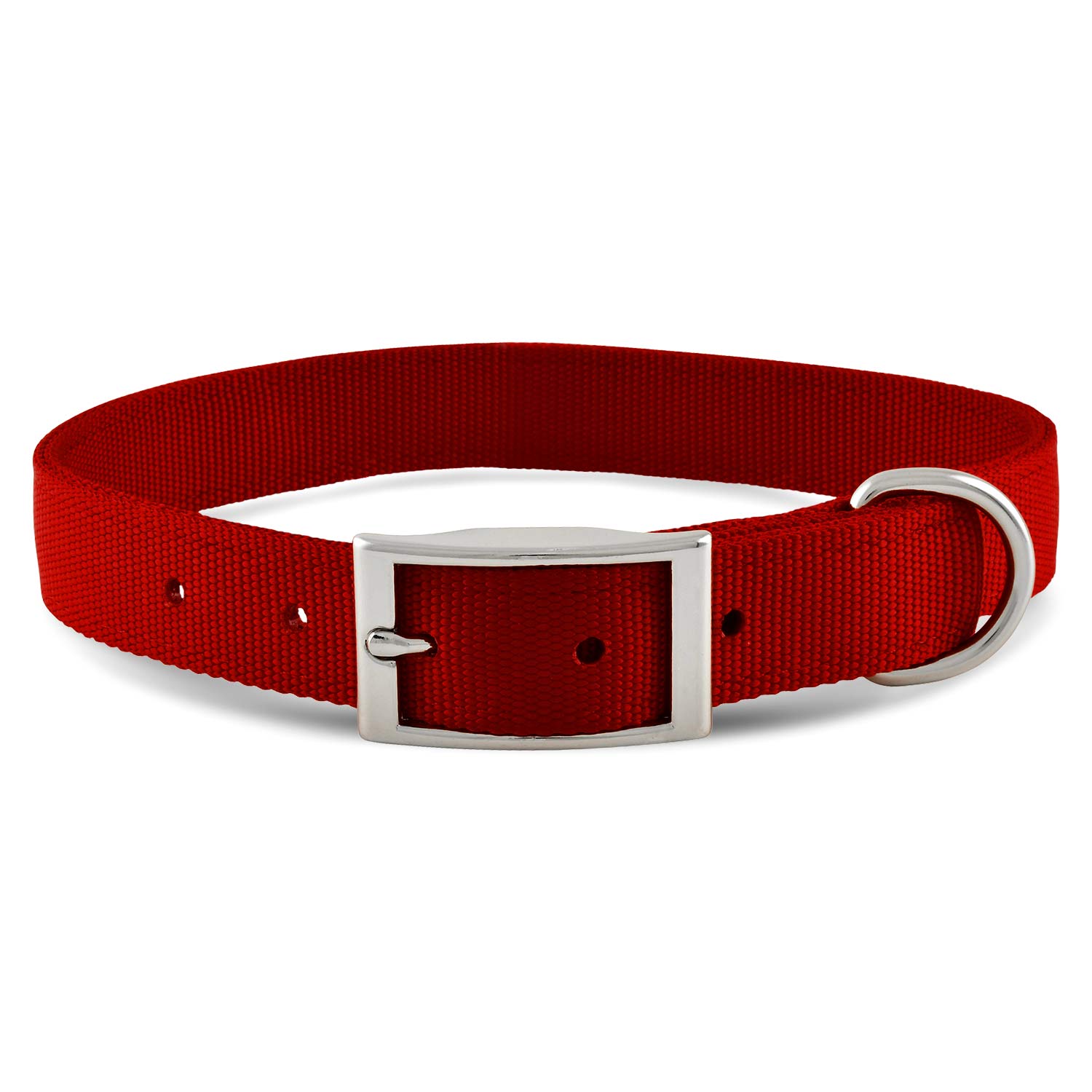 Jeffers Pet Solid Nylon Dog Collars, Red, 1"W x 16"L – Adjustable, Durable & Safe for Dogs, Lightweight & Double Ply Design, Stylish Pet Accessories - Perfect for Training, Walking & Tracker