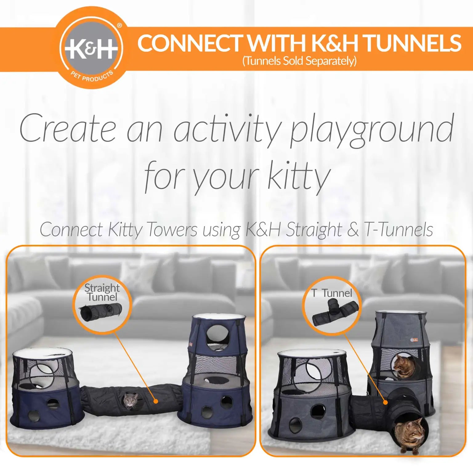 • Multiple entrances that are 7 inches wide to give even large cats access; these also allow the additional K&H Kitty Tunnels (sold separately) to connect multiple Kitty Towers