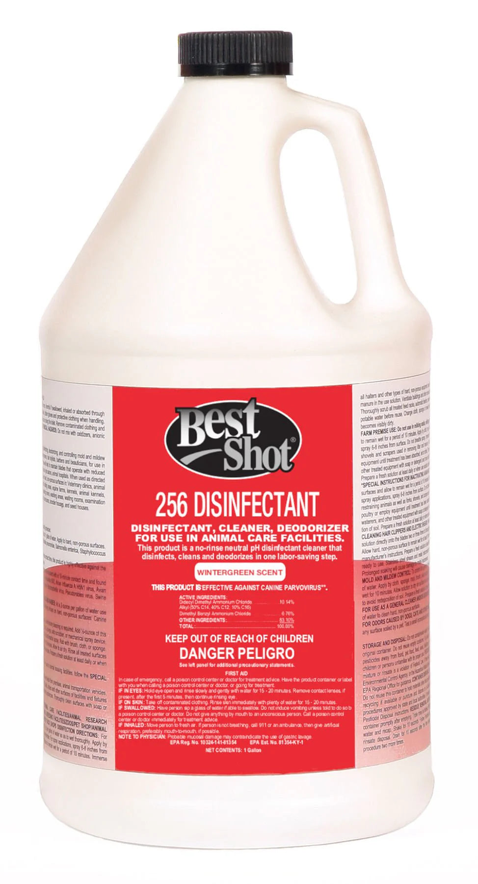 - CAUTIONS/WARNINGS:Not to be applied directly upon animals! This product cannot be shipped to California due to state regulations - DIRECTIONS:One gallon makes 256 gallons of cleaning solution (dilute 1/2 oz. to 1 gallon of water) It is a violation of federal law to use this product in manner inconsistent with its label.<br> Before using this product food product and packaging material must be removed from the room or carefully protected. General Disinfectant performance in non-medical facilities: Add ½ once of this product to 1 gallon of water. Apply to hard non-porous surfaces. Treated surfaces must remain wet for 10 minutes. Allow to air dry. <br> Preparation of Disinfection/Fungicidal/Virucidal Use Solution: For heavily soiled areas a preliminary cleaning is required. Add ½-ounce of this product to 1 gallon of water to disinfect hard non-porous surfaces. Apply use solution using a brush cloth mop sponge auto scrubber or mechanical spray device or by immersion so as to thoroughly wet surfaces. For sprayer applications spray 6-8 inches from surface. Do not breathe spray. Rub with brush cloth or sponge. Change cloth sponge or towels frequently to avoid redisposition if soil. Treated surfaces must remain wet for 10 minutes. Allow to air dry. Rinse all treated surfaces that come in contact with food such as countertops appliances tables and stovetops with potable water before reuse. Prepare a fresh solution at least daily or when use solution becomes visibly dirty. <br> For disinfecting hard non-porous surfaces against avian influenza a virus: For use in animal housing facilities follow the special instructions for inactivating avian influenza a virus in the animal premise sections prior to use cover or remove all food and packaging material before disinfection and remove all animals and feeds from premises animal transportation vehicles and enclosures. Remove all litter dropping and manure from floors walls and surfaces of barns pens stalls chutes and other surfaces of facilities and fixtures occupied or traversed by poultry or other animals. Empty all troughs racks and other feeding and watering appliances. Thoroughly clean surfaces with soap or detergent and rinse with water. <br> Veterinary clinics/animal life science laboratory/animal care facilities/animal research centers/animal laboratory/animal quarantine areas/animal breeding facilities/zoos/pet shop/animal husbandry/kennels/breeding and grooming establishments/tack shops disinfection directions: for cleaning and disinfecting hard non-porous surfaces apply a use solution of ½ oz per gallon of water so as to wet thoroughly. Apply by cloth mop brush sponge auto scrubber or mechanical spray device or by immersion. For spray application spray 6-8 inches from surface. Do not breathe spray. Rub with brush cloth or sponge. Allow surfaces to remain wet for a period of 10 minutes. Immerse all halters and other types of hard non-porous equipment used in handling and restraining animals as well as forks shovels scrapers used in removing litter and manure in the use solution. Ventilate buildings and other closed spaces. Do not house animals or employ equipment until treatment has been absorbed set or dried. Thoroughly scrub all treated feed racks automatic feeders waters and other treated equipment that dispenses food or water with soap or detergent and rinse with potable water before reuse. Change cloth sponge or towels frequently to avoid redisposition of soil. Prepare a fresh solution at least daily or when use solution becomes visibly dirty.<br> Special Instructions for Inactivating Avian Influenza A Virus: apply the disinfecting solution of ½ oz per gallon of water to all hard non-porous surfaces and allow to remain wet for a period of 10 minutes. Apply by cloth mop brush sponge auto scrubber or mechanical spray device or by immersion. For spray applications spray 6-8 inches from surface. Do not breathe spray. Immerse all halters and other types of hard non-porous equipment use in handling and restrain animals as well as forks shoves and scrapers used in removing litter and manure. Ventilate buildings coops and other closed spaces. Do not house poultry or employ equipment until treatment has been absorbed set or dried. Thoroughly scrub treated feed racks troughs automatic feeders fountains and waters and other treated equipment with soap or detergent and rinse with portable water before reuse. Change cloth sponge or towels frequently to avoid redisposition of soil. Prepare a fresh solution at least daily or when used solution becomes visibly dirty. <br> Cleaning hair clippers and electric shears: while clipper/shear is running hold in the downward position and spray a ½ ounce per gallon water use solutions directly onto the blades two or three times to thoroughly we the blades. Do not spray on the clipper case or drip into clipper housing. Turn off clipper/shear. Allow hard non-porous surface to remain wet for at least 10 minutes. Rinse surfaces thoroughly. Then wip dry with a clean soft cloth. Lubricate as per clipper/shear manufacturers instructions. Prepare a fresh solution at least daily or when use solution becomes visibly dirty. Note: Plastic instruments can remain immersed until ready t use. Stainless steel shears and metal instruments must be removed after 10 minutes rinse dried and kept in a clean non-contaminated receptacle. Prolonged soaking will cause damage to metal instruments. <br> Mold and Mildew control: To control the growth of mold and mildew and their odors on hard non-porous surfaces apply use solutions of ½ ounce per gallon of water. Apply by cloth sponge mop brush auto scrubber or mechanical spray device to thoroughly wet all treated surfaces completely. Allow surface to remain wet for 10 minutes. Allow solution to dry on surface and repeat treatment every seven days or when new growth appears. Change cloth sponge or towels frequently to avoid redisposition of soil. Prepare a fresh solution at least daily 