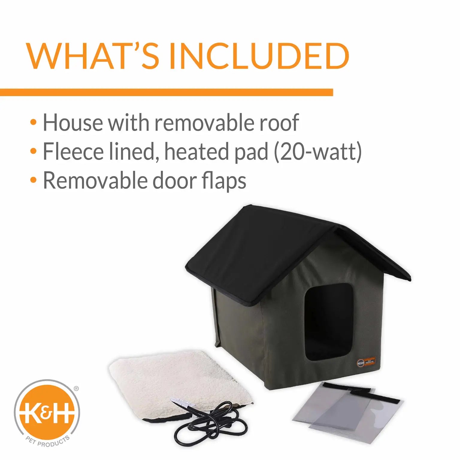 • The featured 20 Watt MET safety listed plush heated pet bed inside the K&H outdoor heated kitty house keeps your kitties warm -- even in sub-zero temperatures!