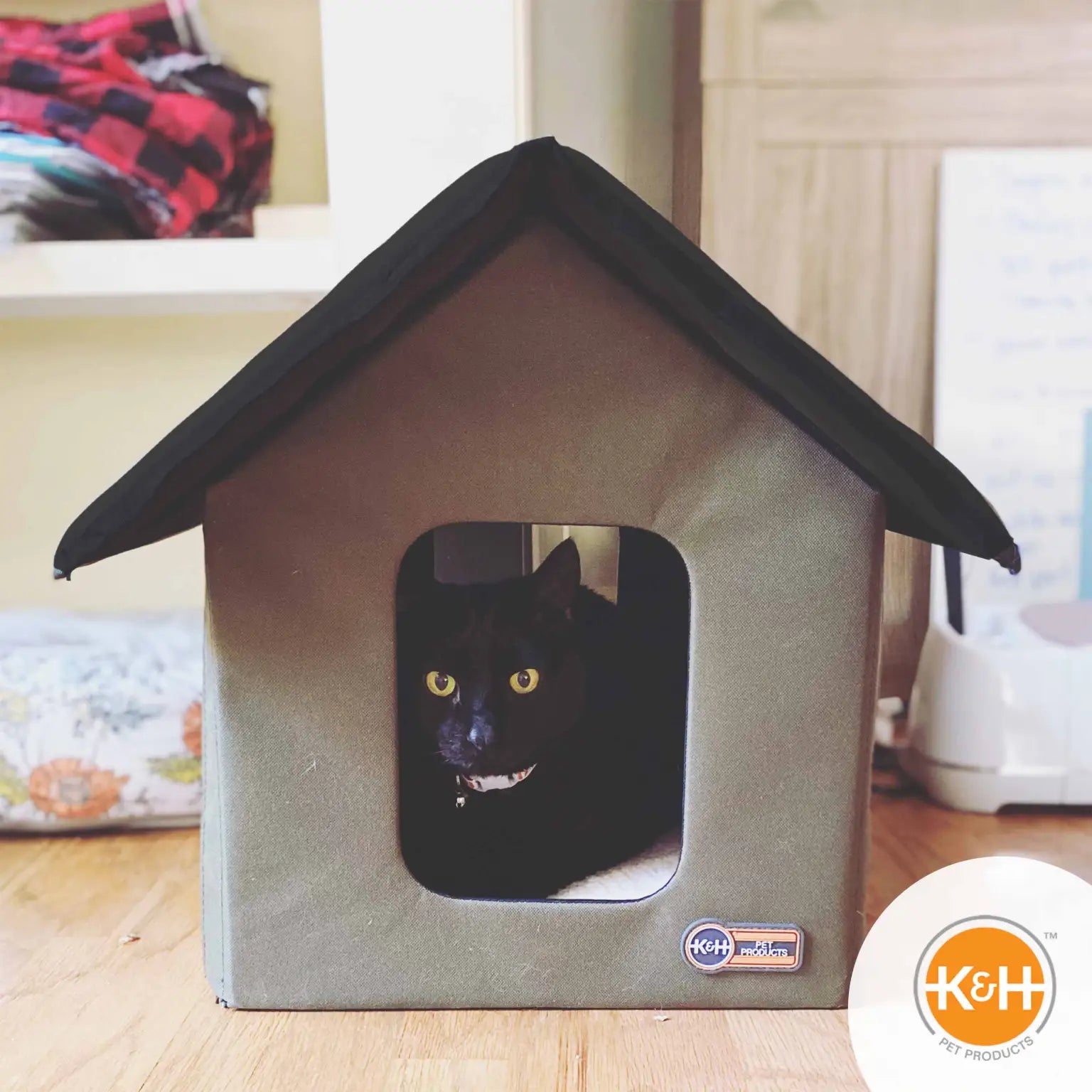 K&H Pet Products Outdoor Heated Kitty House Cat Shelter Olive 19″ x 22″ x 17″ – KH100546560