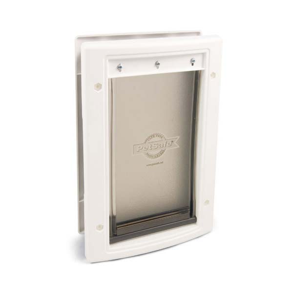 The soft, flexible transparent panels are safe and easy for your dog to push open so he can let himself out – and back in. The panels can also keep drafts and insects out of your home. Durable plastic frame with closing panel for security. Great for storm doors. For pets up to 100 lbs.