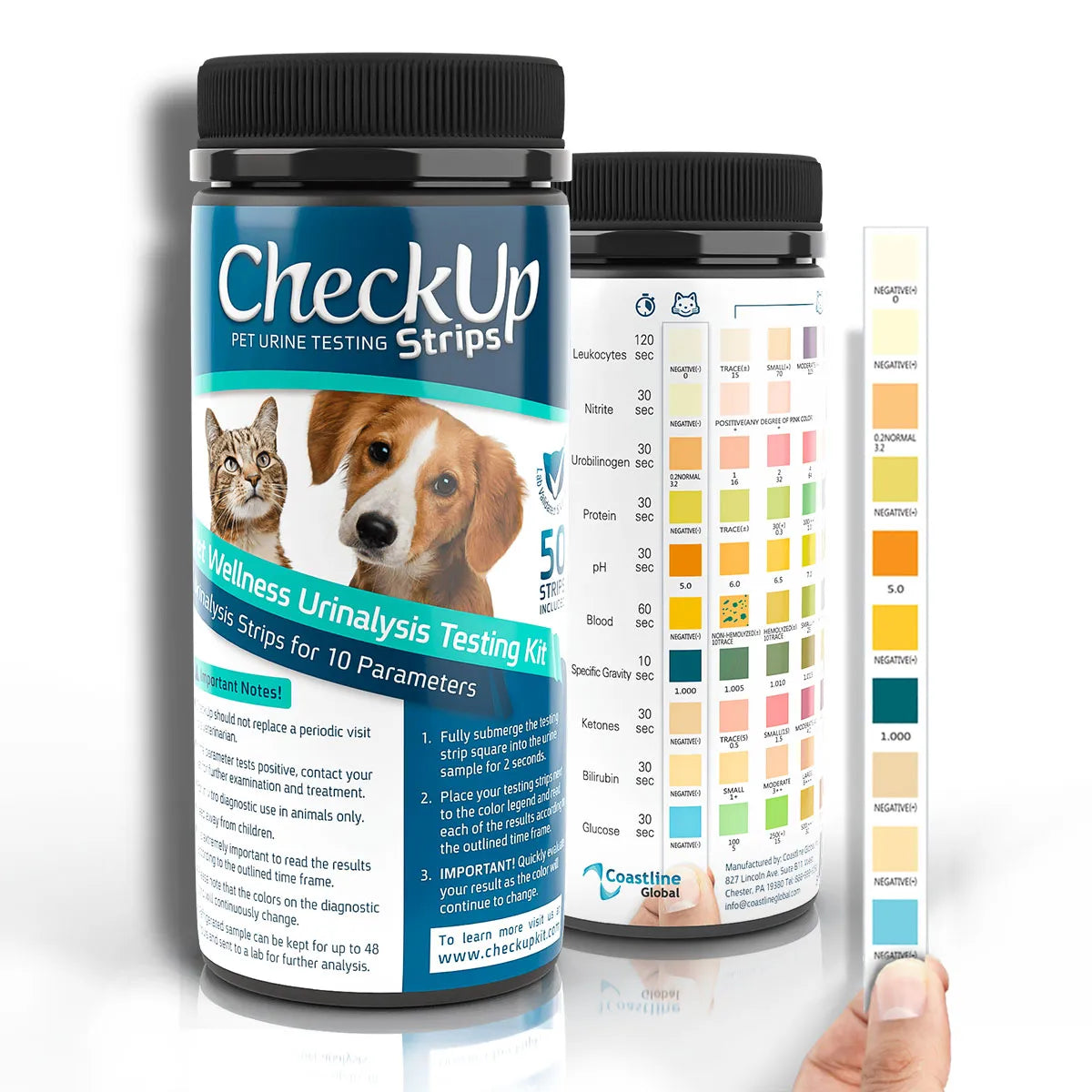 Coastline Global CheckUp 10-in-1 Dog and Cat Urine Testing Strips 50 count 4″ x 1.5″ x 1.5″ – CUA10